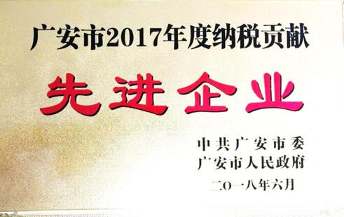 愛眾股份公司榮獲“廣安市2017年度納稅貢獻先進企業”稱號